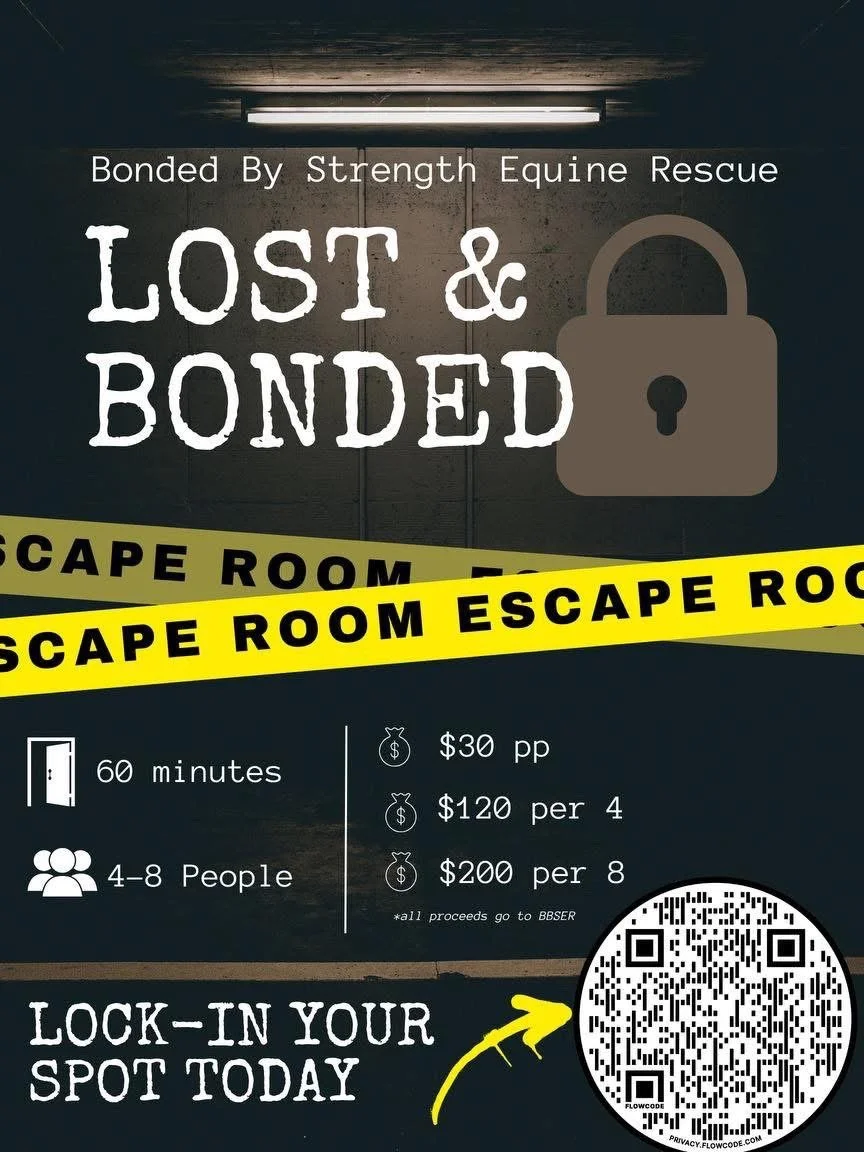 Lost and Bonded…… Please come see if you can solve the mystery of the lost girl. A young girl ran away from her foster home to find her self lost at an old abandoned horse farm. Can you travel through the barn in 60 minutes and see where she’s been and figure out what happen to her?